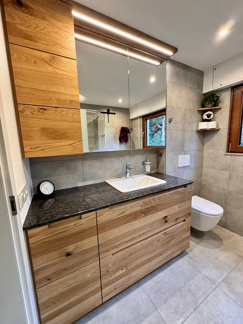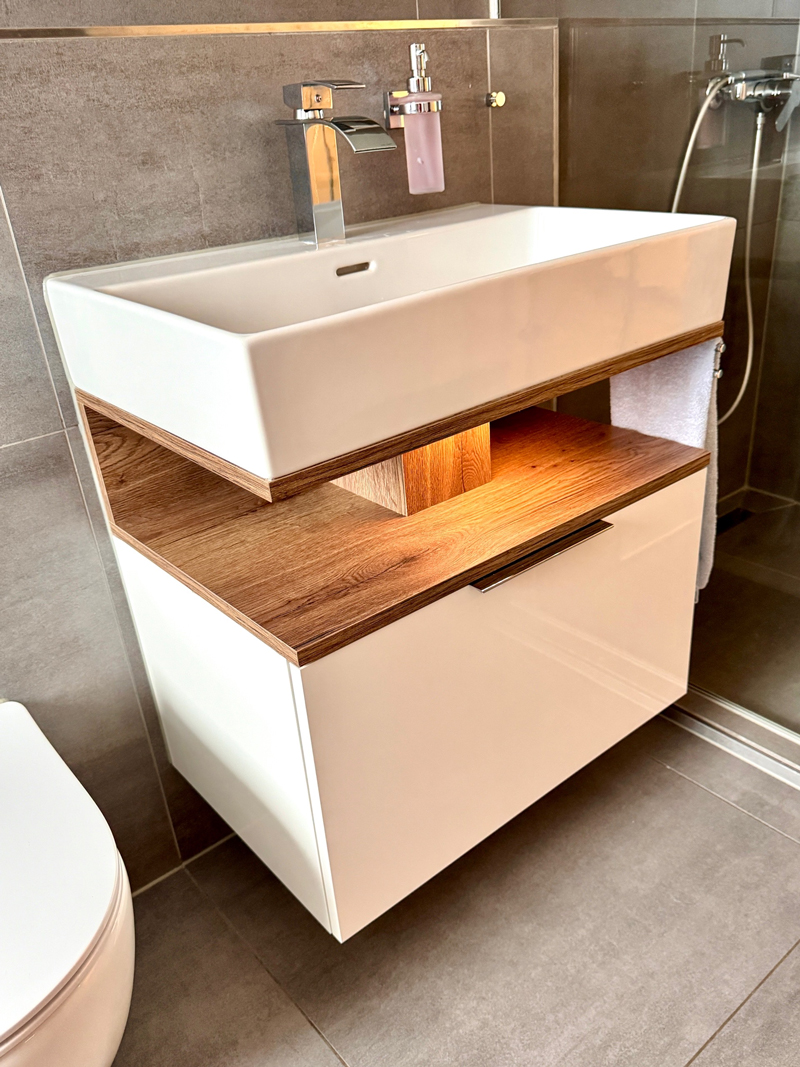 Trendige Massivholzwaschtische und durchdachte Lösungen erwarten Sie.