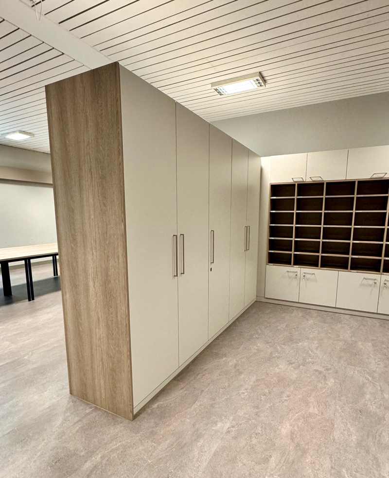 flächenbündiges Tür und Schrankelement, raumhoch, Innenschubkästen
