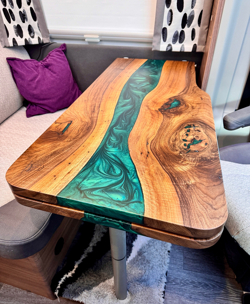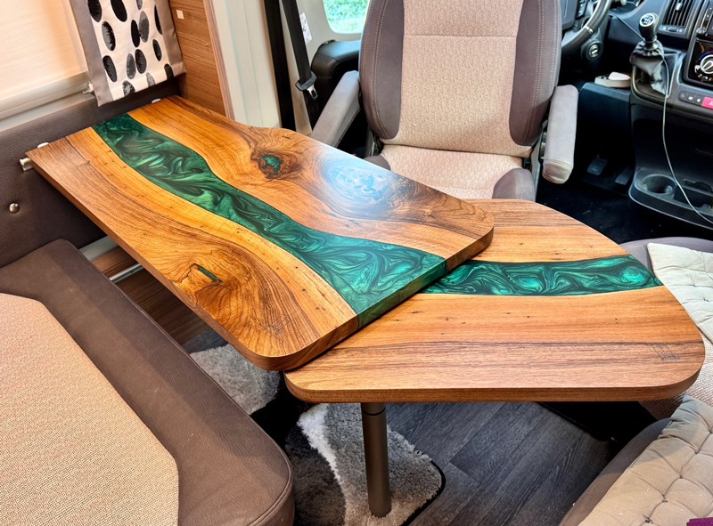 Epoxidharztisch mit Erweiterung für Wohnmobil